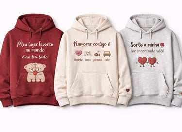 Surpreende quem amas com as nossas t-shirts e hoodies exclusivas, com frases cheias de amor e designs únicos. Conforto, estilo e sentimento num só produto — ideal para oferecer ou usar a dois.Portes gratis acima de 50 euros